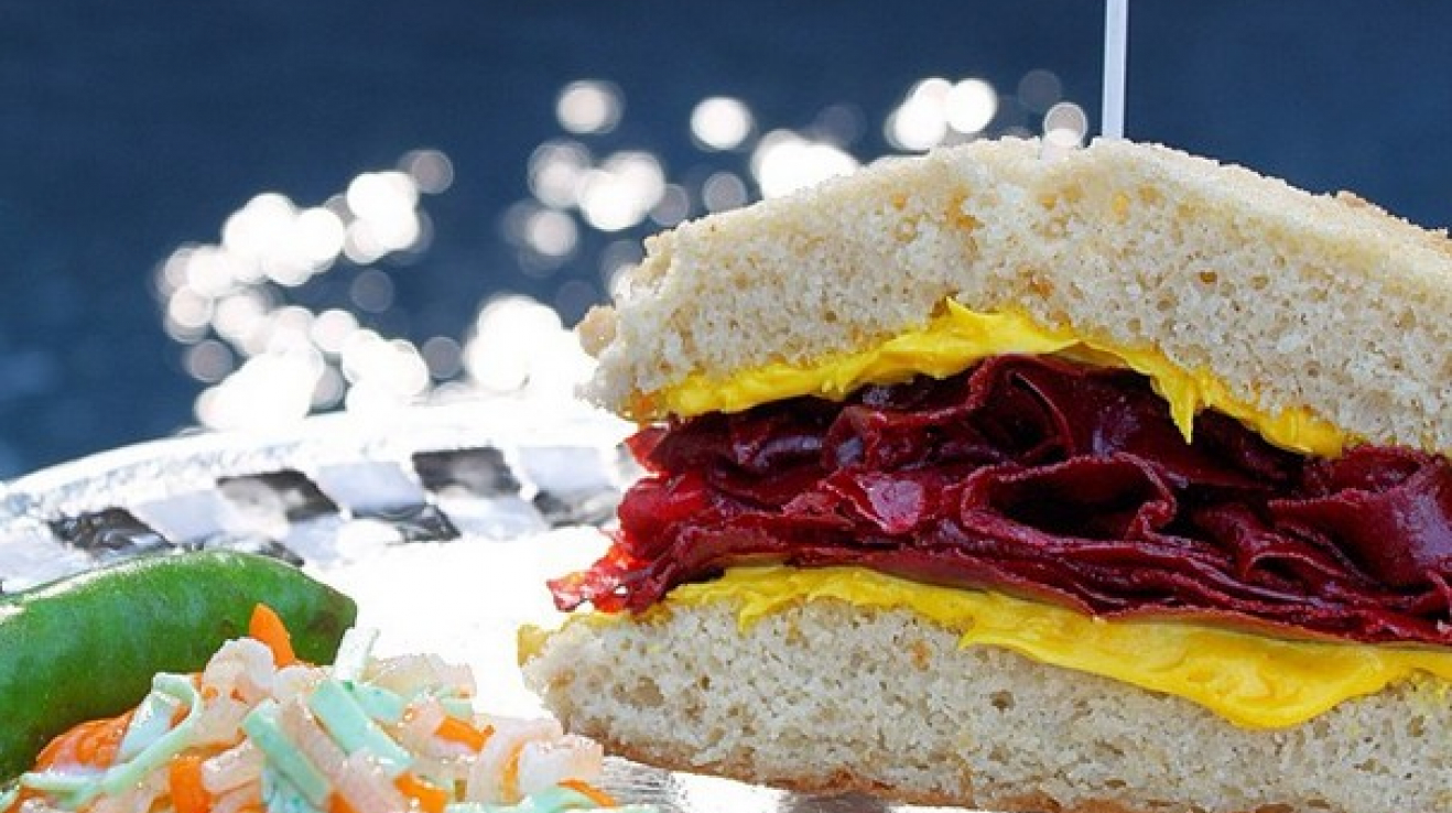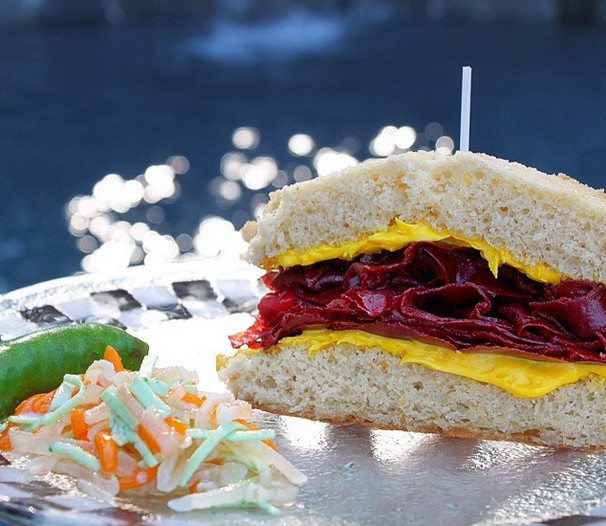 8. Bageta s masovou náplní (karamel, twinkies, gumové bonbony, gumoví medvídci, čokoláda, arašídy)