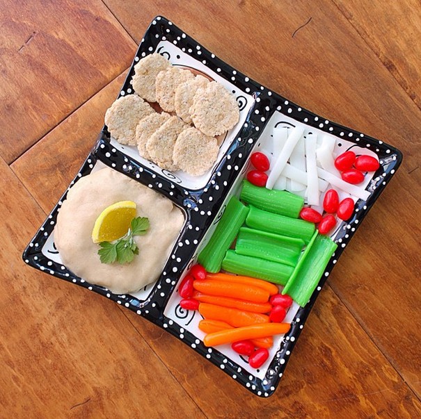 11. Vegetariánská hostina (sušenkové těsto, karamel, ovocné fazolky, žvýkačky, rýžové sušenky, přesnídávka)