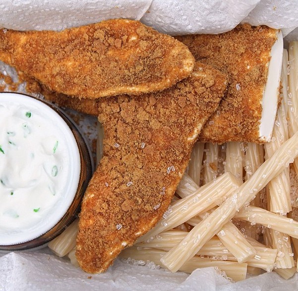 5. Řízek a hranolky (karamel, marcipán, sušenková drť, pendrek, cukr, šlehačka)