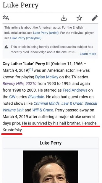 Někteří fanoušci včera dokonce opakovaně přidávali do životopisu Perryho na Wikipedii zmínku o jeho starším bratrovi Krustym.
