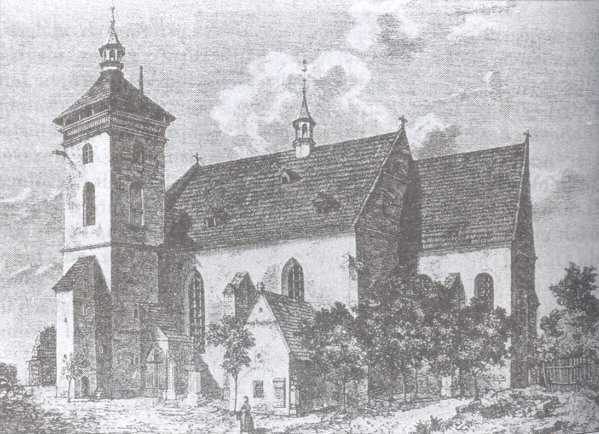 Tohle je kostel, ve kterém se „našel“ Rukopis královédvorský.By unknown, uploaded Daniel.baranek - KUTNAR, František – MAREK, Jaroslav. Přehledné dějiny českého a slovenského dějepisectví. 2. vyd. Praha: NLN, 1997. 1065 s. ISBN 80-7106-252-9. str. 174., Public Domain, https://commons.wikimedia.org/w/index.php?curid