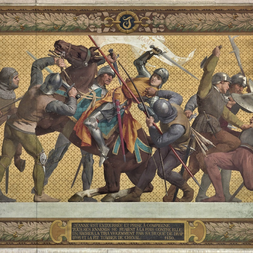 Ačkoliv se nás jako Čechů (až na jeden naštvaný dopis husitům) ten příběh vlastně netýká, všichni ho velmi dobře známe. Johanka/Jana z Arku, též zvaná Panna orelánská, se narodila roku 1412 do zámožné selské rodiny. Od 14 let slýchala hlasy – hlas sv. Kateřiny, sv. Markéty a archanděla Michaela. Ten poslední dívce sdělil, že ji sám Bůh vyvolil ke speciálnímu poslání – měla obléct mužský šat, postavit se do čela vojsk francouzského krále a osvobodit Orleáns. To se jí skutečně podařilo – a nejen to. Žena pevné víry, naprosto oddaná svému poslání, dokázala vojáky motivovat. Lid ji miloval, kdo se však její popularity začal obávat, to byl sám král. A tak jí svěřoval stále víc méně důležitých, leč o to nebezpečnějších úkolů. Nakonec byla Johanka u města Compiegne a zřejmě kvůli zradě zajata Burgunďany, tajnými spojenci Angličanů, kteří ji nepříteli prodali za 10 tisíc.