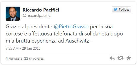 To bylo tak: v úterý kolem jedenácté večer skončil Riccardo Pacifici (mluvčí židovské komunity v Římě) v prostorách bývalého vyhlazovacího tábora (mimochodem, jeho prarodiče zde zahynuli) natáčení živých vstupů pro televizní přenos oslav 70. výročí osvobození Osvětimi. Když si i se štábem sbalili všechny věci a vydali se ven, našli vstupní bránu – jediný možný východ – zamčenou. Uvězněnou skupinu tvořili vedle Riccarda Pacificiho ještě mluvčí židovské komunity Fabio Perugia, televizní moderátor a dva technici.