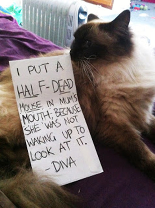 Bez servítek o kočičích nešvarech. Veronika Doleželová 6.6.2014, 18:00 Sdílet 1. "Dala jsem paničce do úst polomrtvou myš. Nechtěla se totiž probudit a podívat se na ni." tumblr.com 2. "Byla to jednorázovka." tumblr.com 3. "Počůrala jsem křečka." tumblr.com 4. "Lížu máslo." tumblr.com 5. "Shazuji věci z polic a přitom svému pánovi hledím do očí." catshaming.co.uk 6. "Ráda mačkám deky a přitom na tebe zírám." tumblr.com 7. "Když jsem naštvaná, kadím na koberec." tumblr.com 8. "Snědla jsem nitě své paničky, vykadila je a pak je tahala po bytě. Byly stále v mém zadku." tumblr.com 9. "Sledoval jsem myš, jak žere moje jídlo. Nic jsem neudělal." tumblr.com 10. "Rád po bytě sbírám různé věci (vánoční ozdoby, pánovy ponožky, moje hračky, atd.) a házím je do toalety." tumblr.com 11. "Nějakým způsobem se mi povedlo otevřít víko od urny a pak jsem kýchal do babiččina prachu." tumblr.com 15 zásadních přiznání psů najdete ZDE. Sdílet TÉMATA