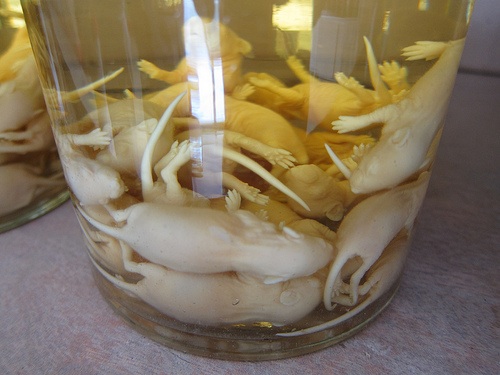 Když se v Číně a Koreji narodí malé myšičky, některé z nich ještě ani nestačí otevřít oči a utopí se v chlastu.