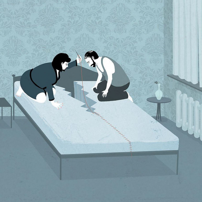20 provokujících ilustrací švýcarského umělce o životě, vztazích, aktuálních problémech světa a tak vůbec