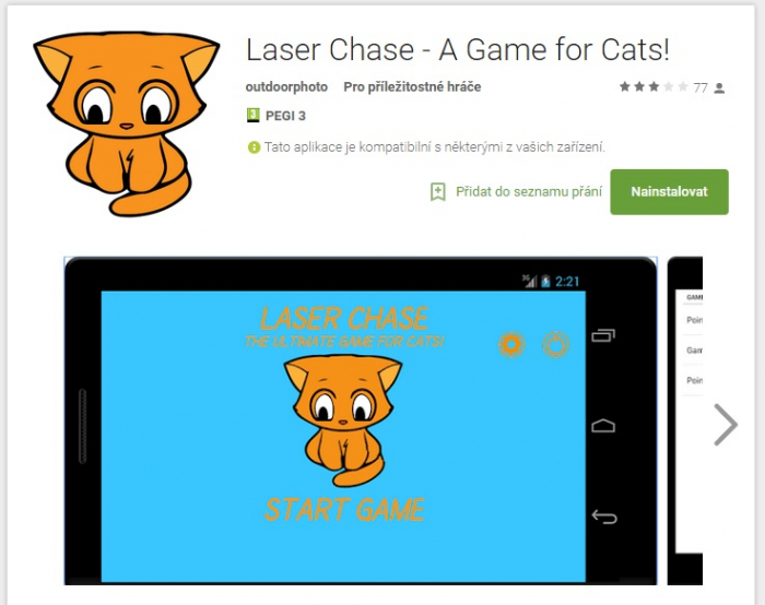 Kočky milují chytání červeného zakletého světélka. Takhle hra je tedy doopravdy k tabetu doslova přiková - a podle několika testů na různých kočkách to opravdu skvěle funguje. Pokud tedy potřebujete kočičku na chvíli něčím zabavit, jen do toho, appka je volně ke stažení.