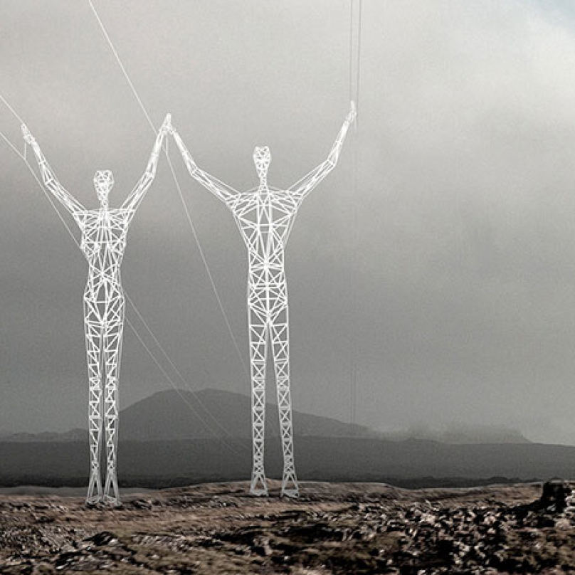 Brooklynské architektonické studio CHOI+SHINE transformovalo ve svém návrhu pro jednu islandskou energetickou společnost klasické stožáry elektrického vedení do gigantických lidských soch. Tento přelomový design je nejen elegantní a oku lahodící, ale i vysoce funkční. "Lidské stožáry", které měří téměř 46 metrů totiž mohou být přizpůsobeny terénu - šplhat do kopce, překonávat údolí nebo jiné krajiné struktury. Mohou stát, klečet, držet se navzájem za ruce, gestikulovat, přizpůsobit se situaci.