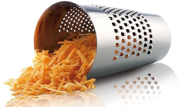 Ano, s názvem trochu improvizujeme, ale alespoň přesně vystihuje to, co je na fotografii. Struhadlo, kde se vše strouhané nesype všude možně okolo, ale zůstává hezky uvnitř a vy to pak jen vysypete, kam potřebujete...