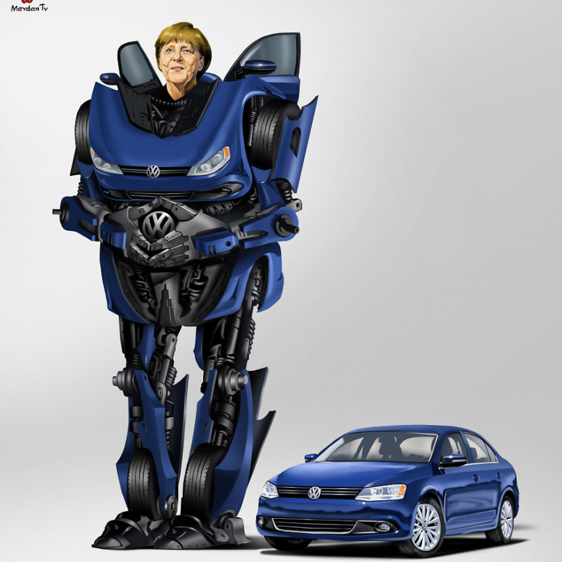 Tentokrát dal slavný výtvarník vybraným politikům, diktátorům či vladařce podobu „maskovaných robotů“:
