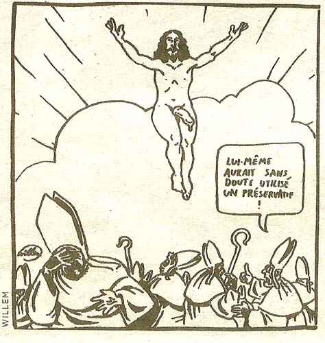 Absurdita islamistického útoku na kreslíře ve Francii se zvýrazní ve chvíli, kdy spatříte tyhle karikatury, kde si různí kreslíři, včetně těch z časopisu Charlie Hebdo, dělají regulerní prdel z katolické církve, Ježíše i křesťanství jako celku. Uráží vás to? Pokud ano, zabíjeli byste kvůli tomu?