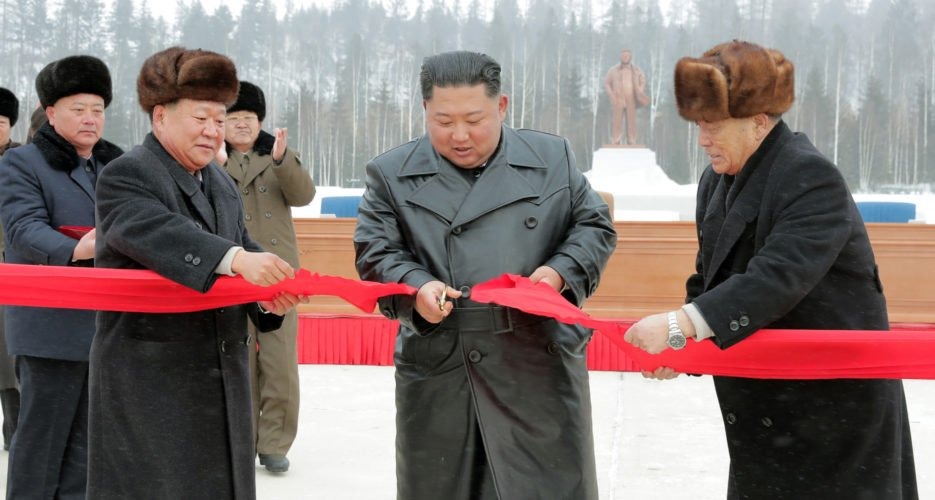 Sám veliký vůdce přijel přestřihnout pásku. Lasery, které umí vystřelovat z očí. Jeho oči však byly tak zality slzami dojetí, že se radši spokojil s nůžkami.https://www.nknews.org/2019/12/north-korea-unveils-newly-reconstructed-utopia-town-in-samjiyon/