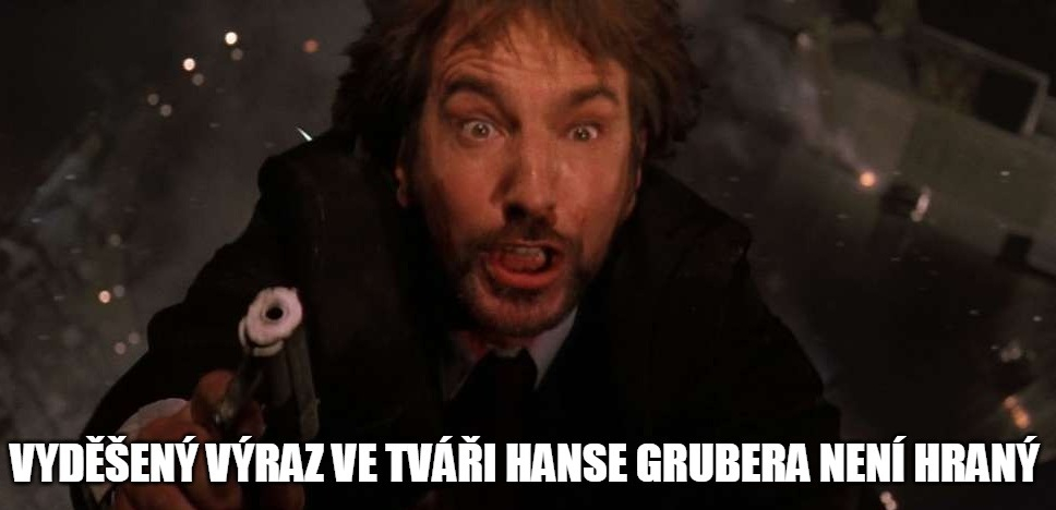 Ačkoliv Alan Rickman počítal s tím, že jeho postava začne padat, až štáb odpočítá tři, režisér to na herce navlékl tak, že do něj nechal strčit už při jedničce. Gruberův vyděšený výraz těsně před smrtí je tak zcela pravý.