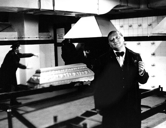 Exteriéry byly natočeny u krematoria v Pardubicích, které připomíná Tibetský chrám. Síň s rakvemi byla natočena ve Strašnicích, urnová místnost pak v ateliérech.