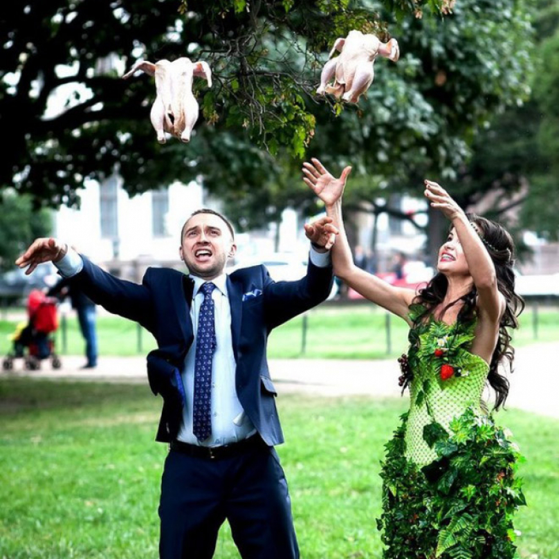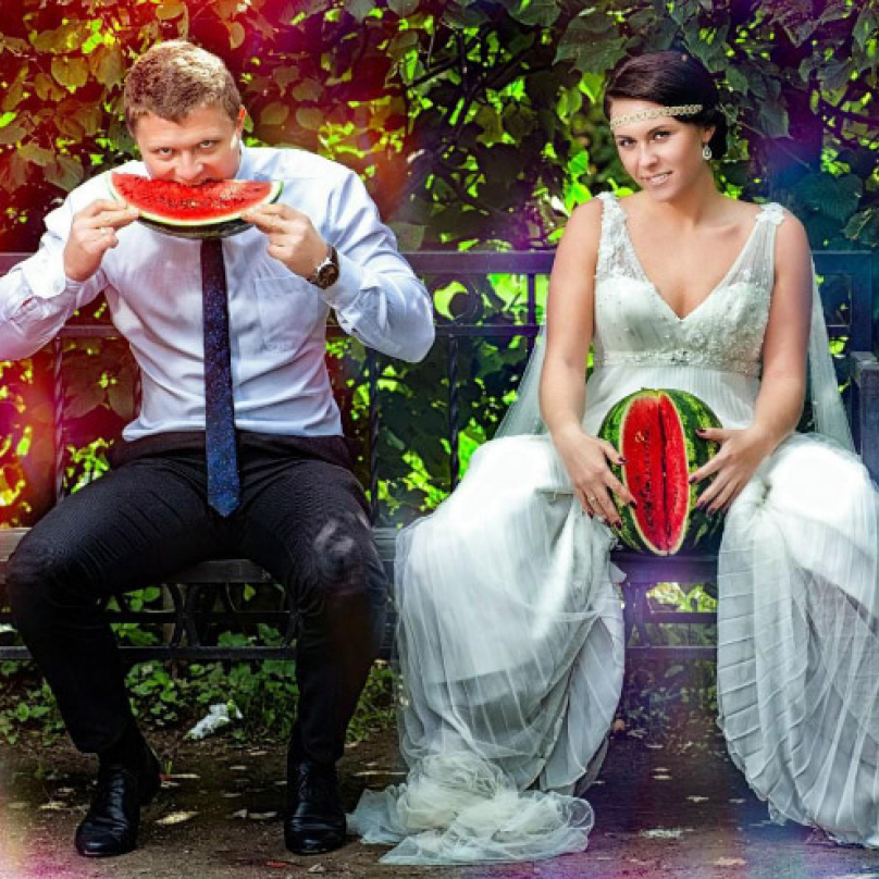 Fotografie ze svatby Tomáše Ortela a jeho milé Jany jsou možná bizarní, na snímky z ruských veselek ale pořád nemají. Na ty nebude mít nikdy nic.