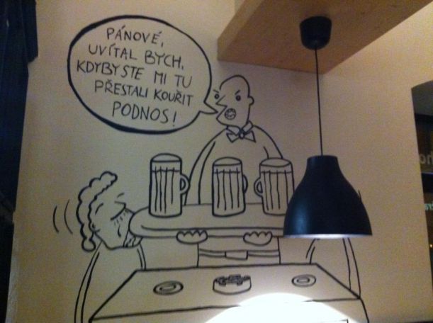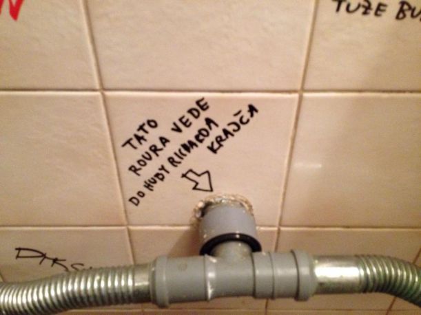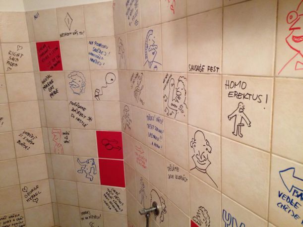 Marty v restauračním byznysu nejede sám, hospodu má společně se dvěma kamarády. Nicméně, on jí propůjčil jméno a image a lidé tam ze začátku budou pravděpodobně chodit hlavně kvůli tomu, že chtějí poznat, jak se vaří u autora sprostých malůvek a mistra fekálního humoru. obrázek 1 (1) Vaří se tam skvěle. V lístku je pár jídel, od nakládaného hermelínu po řízečky s bramborovou kaší, takže nic složitého a přitom všechno výborně zpracované a naservírované. Jestli lidé nebudou do Martyho hospody chodit kvůli komiksům a pivu, budou tam chodit kvůli jídlu. 10155361_558554077591821_3785392495065552556_n 10300809_558553927591836_8914938225892463515_n Když jsme u toho piva, na výčepu najdete Svijany a Plzeň, vyznavačům straight edge a kojícím matkám by mohla vyhovovat točená Kofola. Bar jinak obsahuje klasický sortiment alko i nealko nápojů za docela nepražské ceny. Marty k tomu dodal, že navíc mají i výbornou kávu, tu jsme bohužel nestačili ochutnat. obrázek 2 (1) Co vás ale na hospodě bude zajímat především, je to, jak je vyzdobená. Tedy, jestli se obrázkům análních věnečků, stíracích losů a znásilňovaných cikánů dá vůbec říkat výzdoba. Fanoušek Martyho frků bude nadšen, obrázky visí po zdech a vedle hlavního vchodu je tohle. m1 Záchody v hospodě jsou samostatnou kapitolou. Na dámských si děvčata v zrcadle přečtou, že jsou hnusné a tlusté, taková klasika, co nadchne a urazí. m2 Na pánském wc se Marty skutečně vyřádil. Záchody v jeho hospodě jsou pravděpodobně první, na které se budete v restauračním zařízení vyloženě těšit, pánové. Najdete tam veškerou lidskou moudrost a dozvíte se zajímavé věci, třeba že trubka od pisoáru vede do úst Richarda Krajča. m4   m6 m7 Celkový dojem z Martyho frky Pubu je skvělý, až se hospoda trochu zajede, stoly se trochu ošoupou a nic nebude smrdět novotou, budou se tam slejzat všichni žižkovští psi a návštěvy z blízkého i dalekého okolí. Stojí to za to. obrázek 3 Kdo je Marty a co kreslí? Pro nezasvěcené: přečtěte si náš rozhovor s mistrem niterných tahů a přejemnělého humoru. a také pár podobných výtvorů. Jinak Martyho hospodu najdete zde: marty