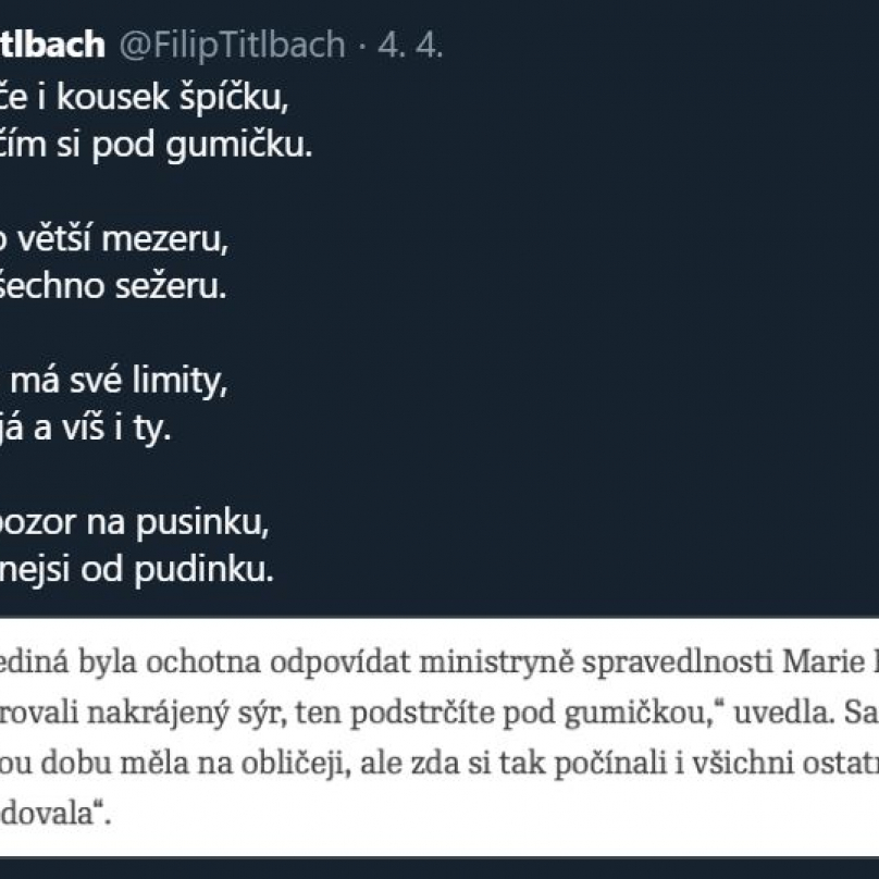 Stoprocentně nejlepší reakce přišla od ministryně spravedlnosti Marie Benešové, která kritiku odbyla tím, že se servíroval nakrájený sýr, který “podstrčíte pod gumičkou”... což… prostě… ty vole… Jak může ministryně spravedlnosti tak moc netušit, co se kolem ní děje?!