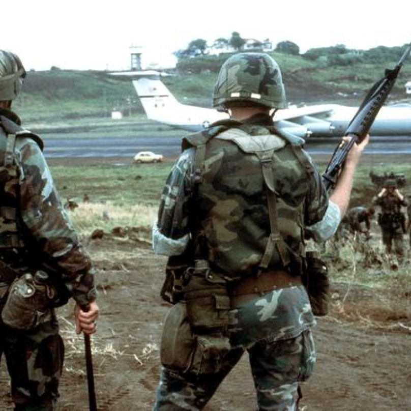 25. října 1983 došlo na pokyn prezidenta Reagana k vojenské invazi na Grenadu a během pouhých čtyř dnů se americkým jednotkám (především z řad námořní pěchoty) podařilo zemi obsadit. Vojenská akce měla zároveň velkou podporu mezi obyvatelstvem ostrova – v Americe pak byl konflikt přijat kladně. Horší už to bylo s reakcí okolního světa. OSN útok odsoudila jako porušení mezinárodního práva, což podporovaly především státy socialistického bloku.